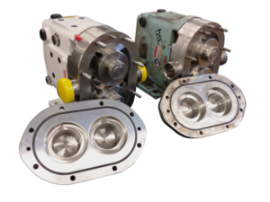 Ampco’s PD pump remanufacturing process includes new shafts, bearings, seals, helical style gears, new Alloy 88 rotors.